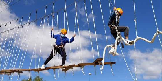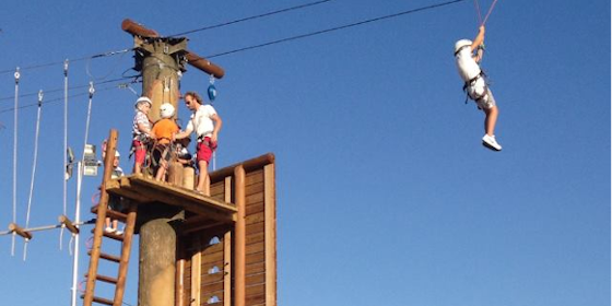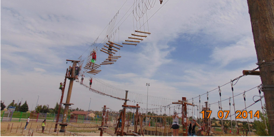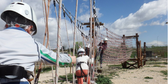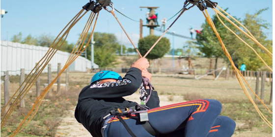 - Subida en Rocódromo o escalera y salto en Tirolina a 8m. de altura,
